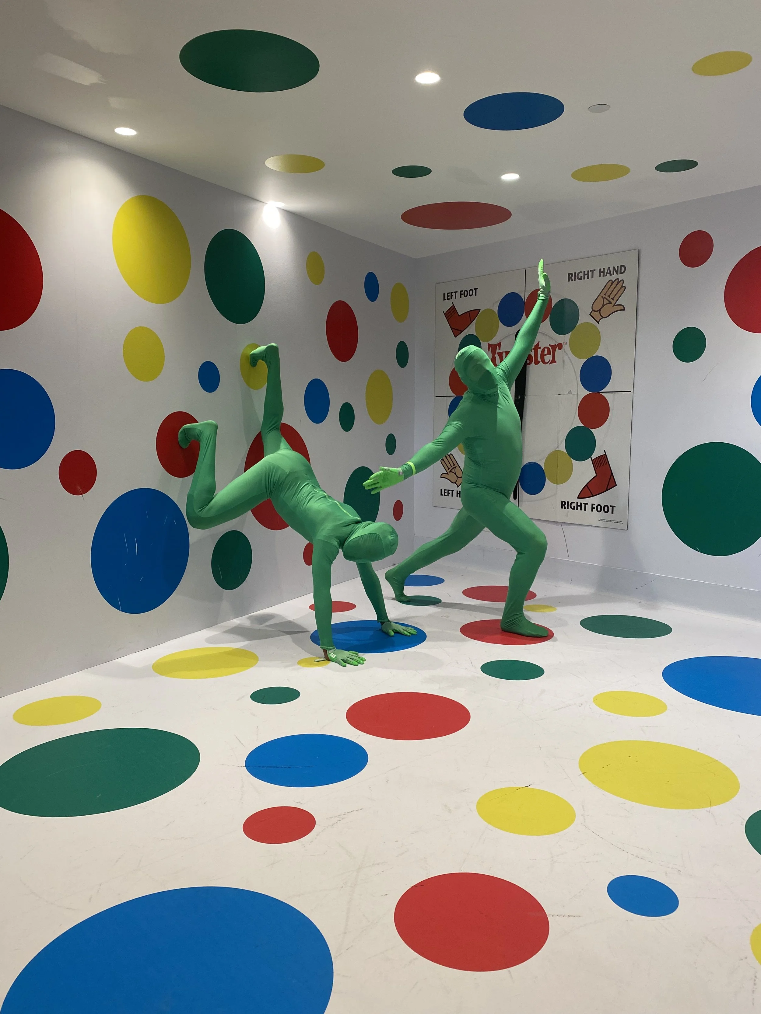 I can’t say much about the show yet but it stars Billy Crudup and Hank Azaria…..and maybe features some pretty cool puppet robots ; ) For now you’ll just have to settle for this weird picture of us in green screen suits.